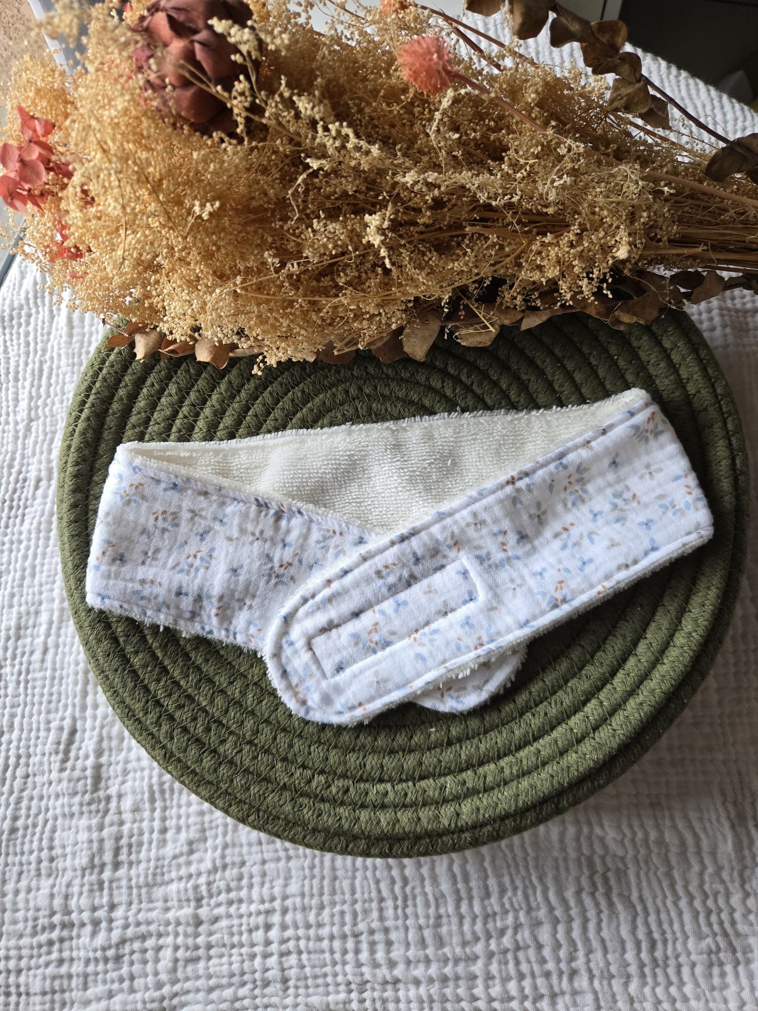 Composition : éponge bambou et double gaze de coton, certifié oeko-tex.