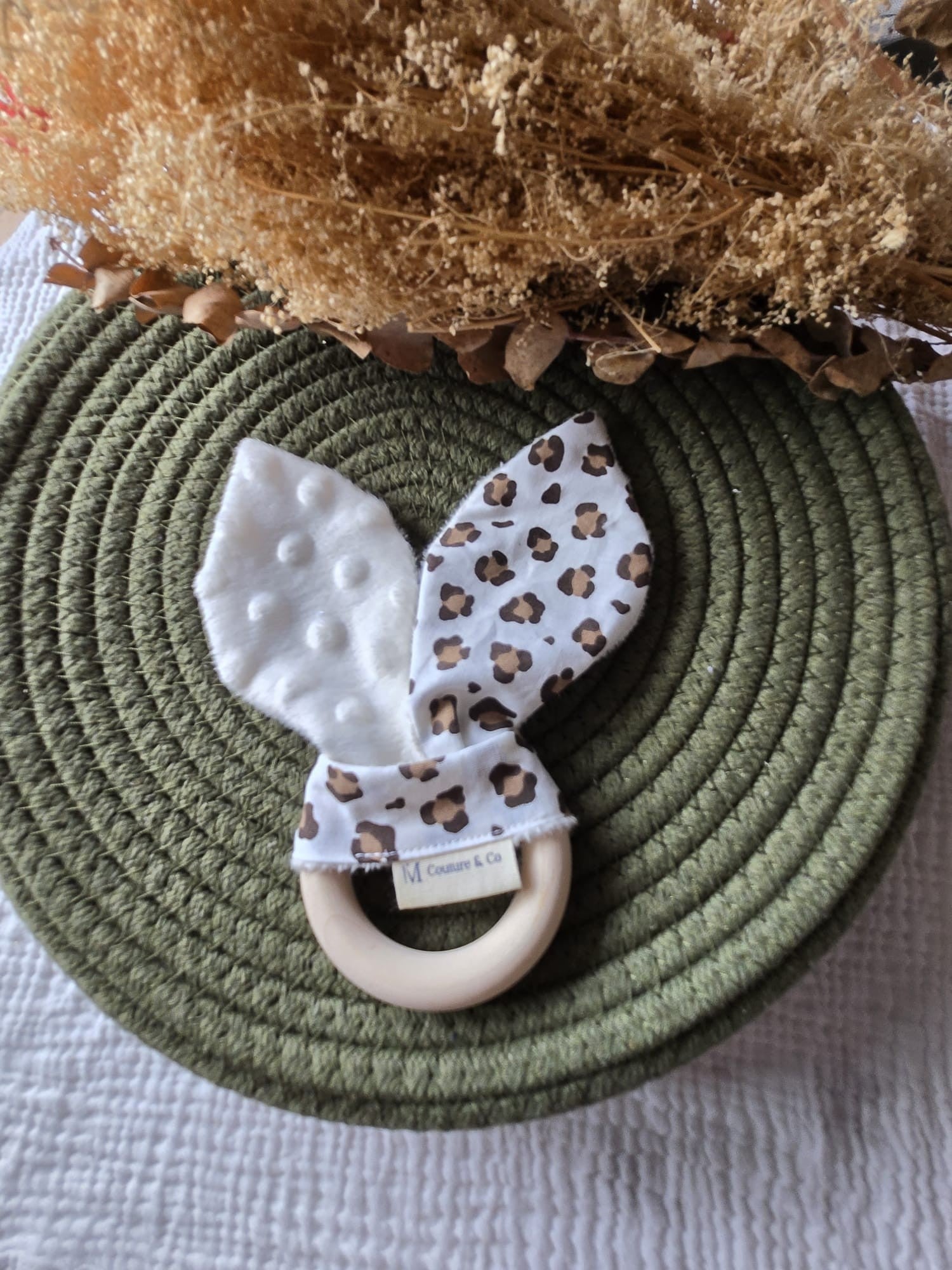 Avec ses petites oreilles en tissu doux et sensoriel, notre anneau de dentition est le compagnon idéal pour soulager bébé pendant la poussée dentaire. Conçu avec un anneau en bois de hêtre naturel, non traité et certifié CE, il est à la fois sûr pour bébé et respectueux de l'environnement.